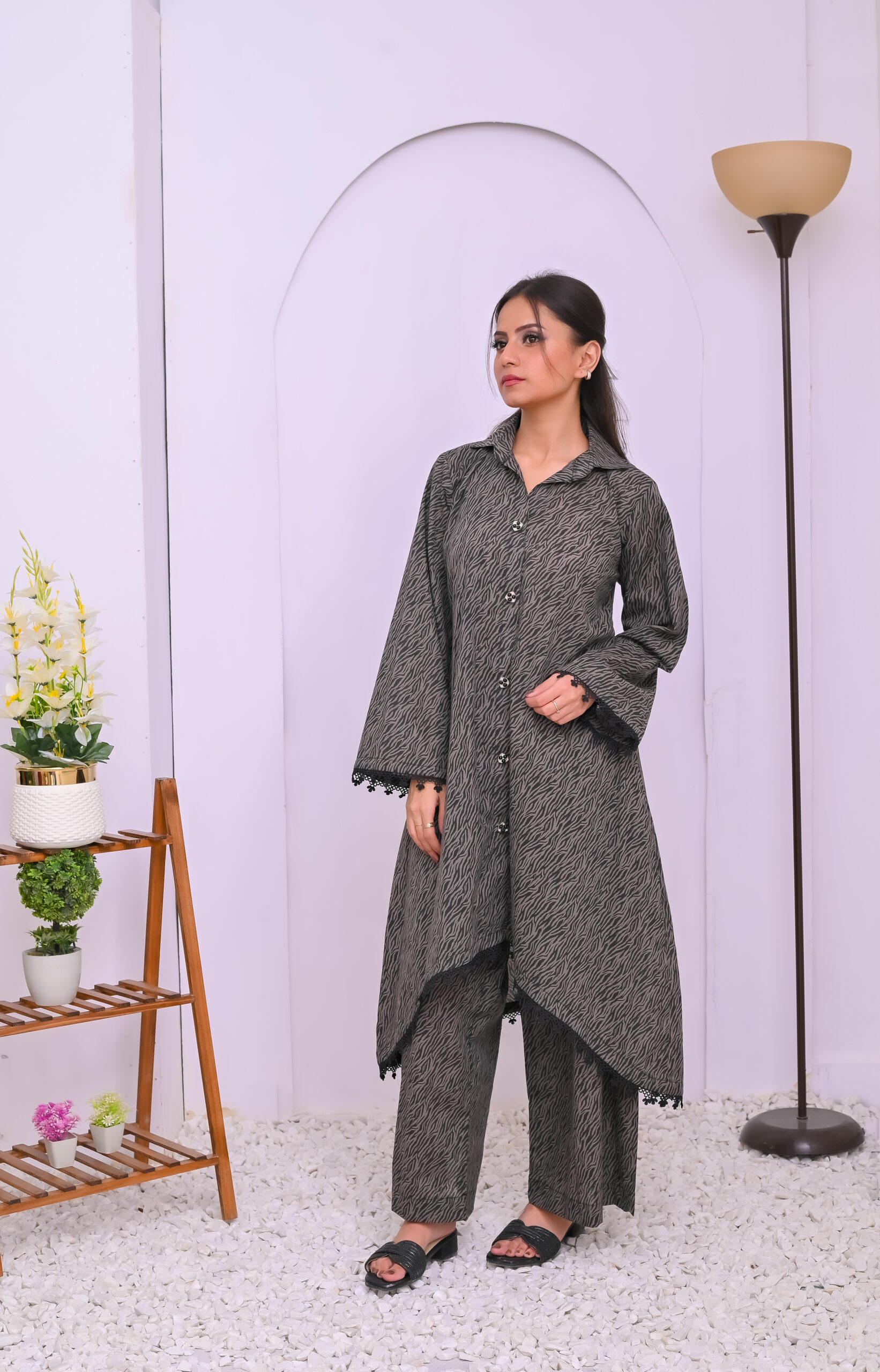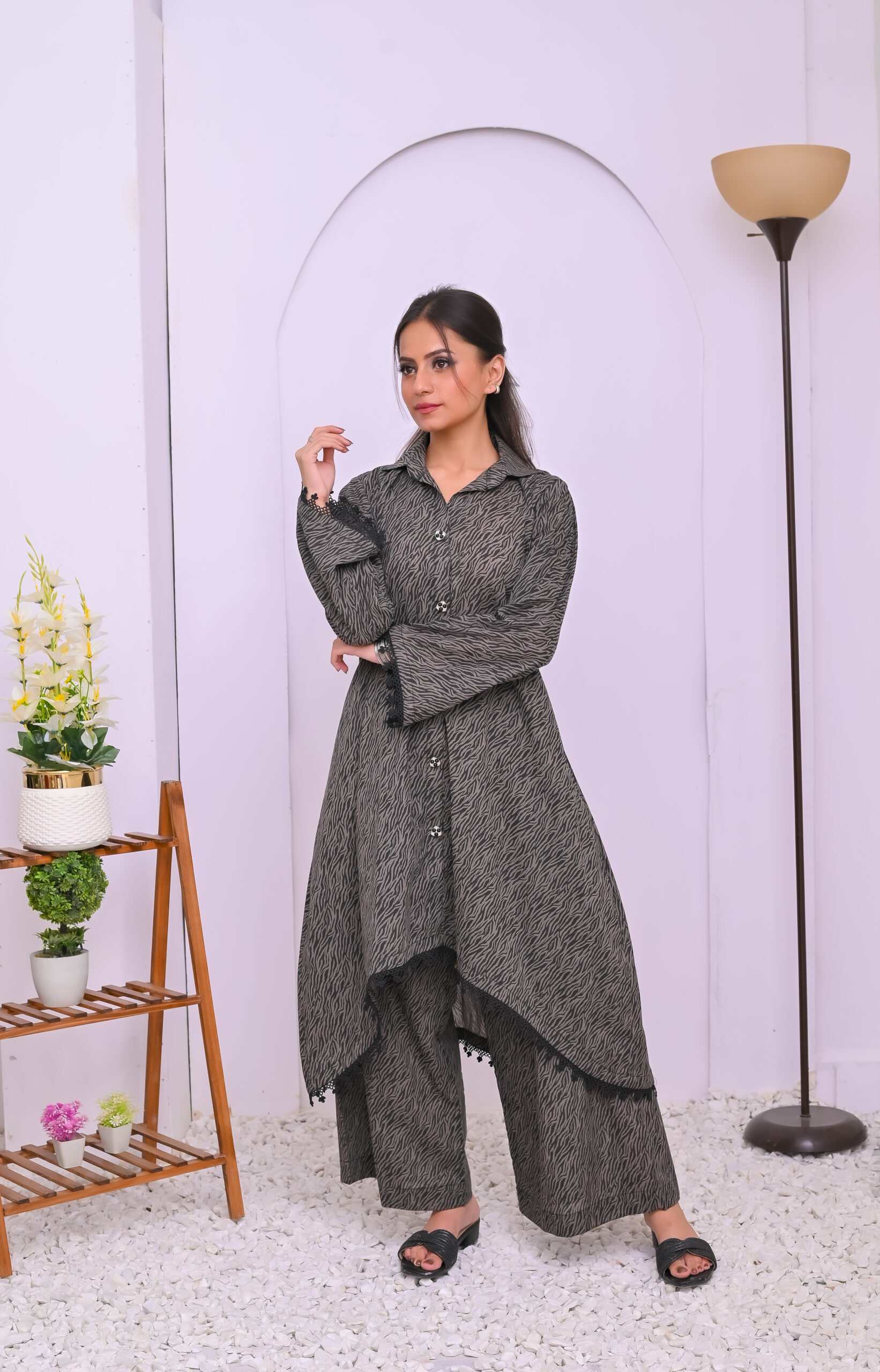 A sleek and stylish co-ord set in a refined grey tone. Crafted from premium fabric for all-day comfort, perfect for casual wear or semi-formal gatherings
