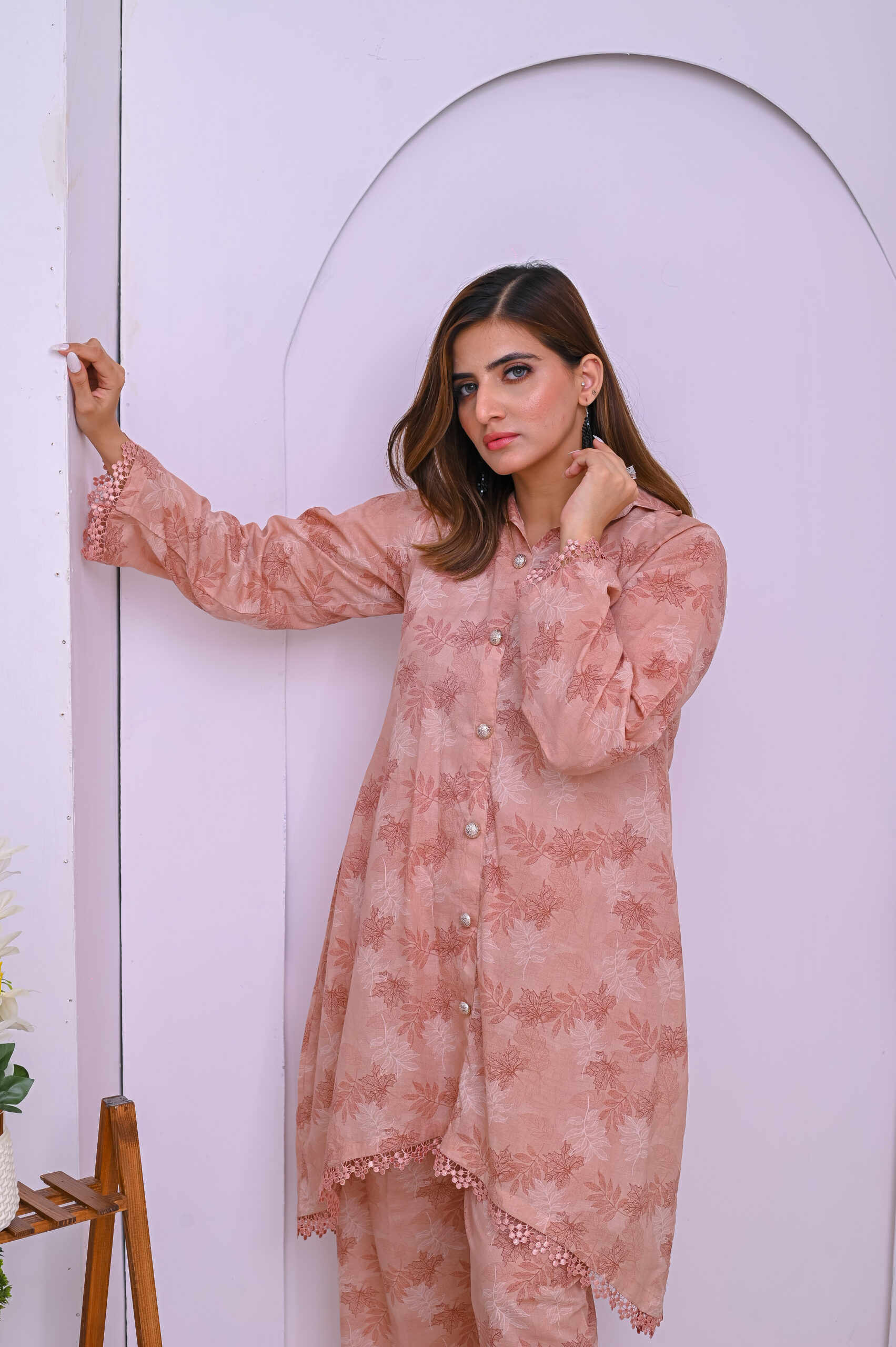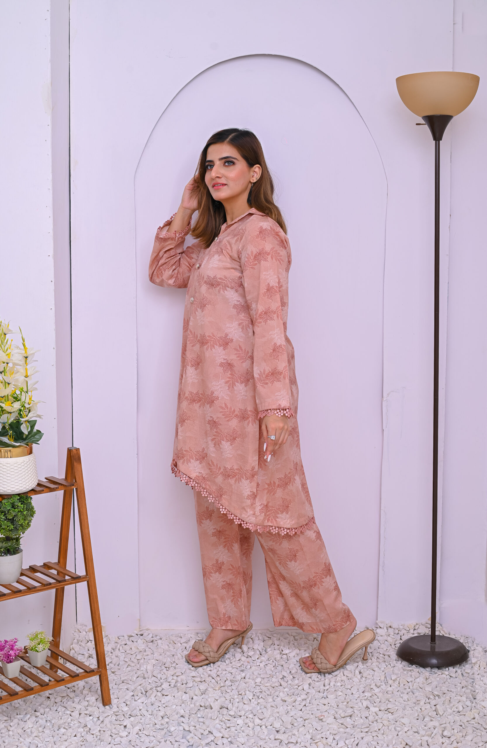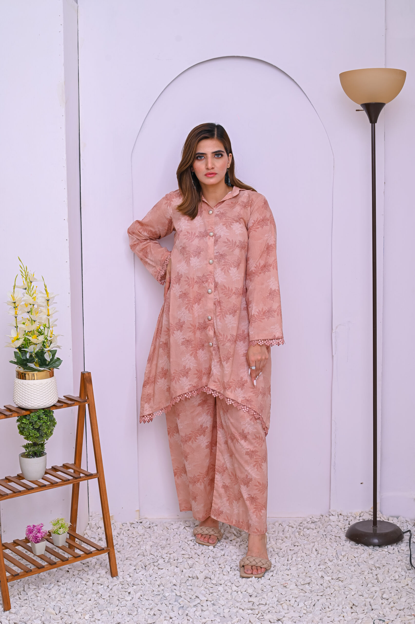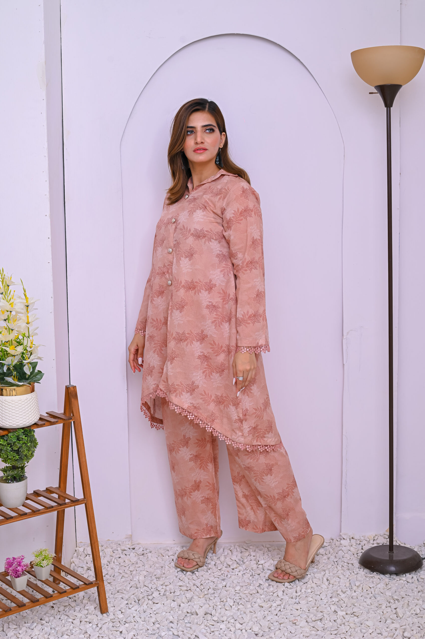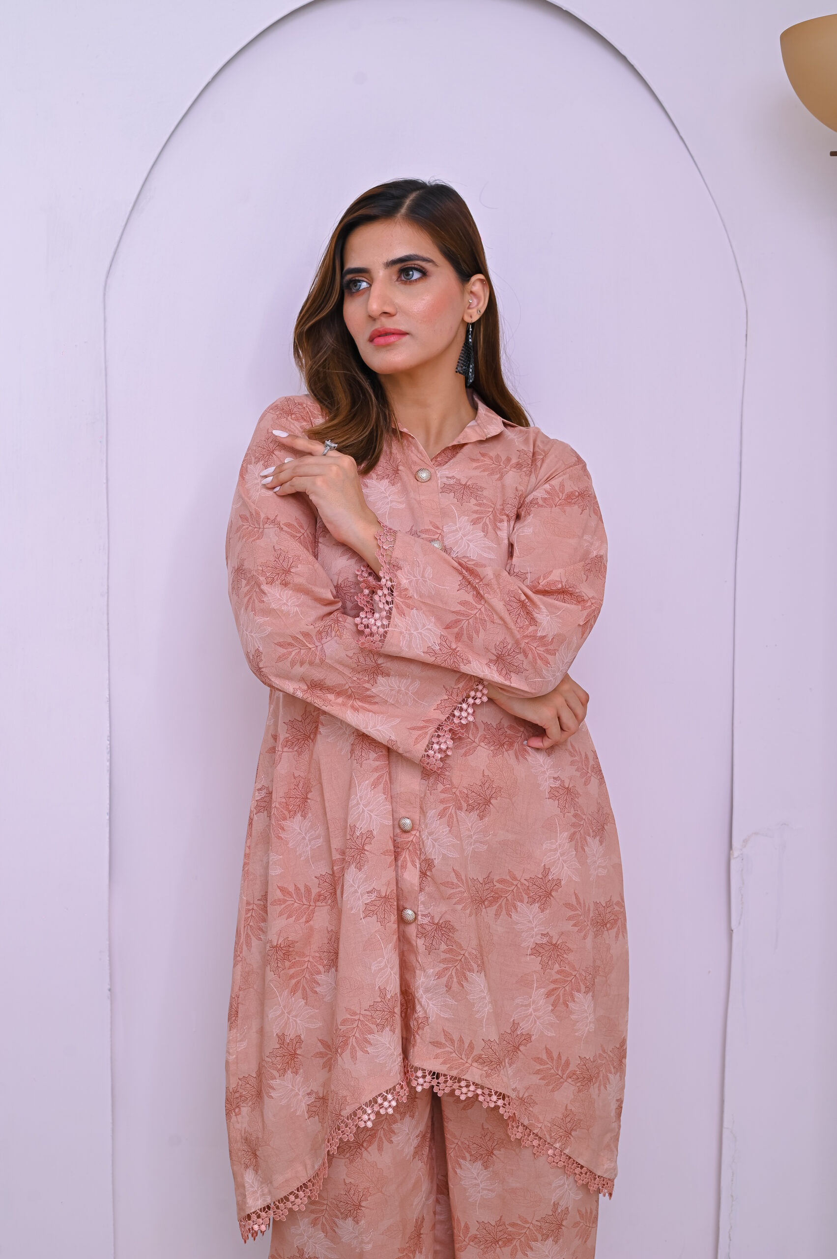 A soft and elegant co-ord set in a delicate pale pink shade. Crafted from premium fabric for a comfortable yet stylish look, perfect for casual and semi-formal occasions